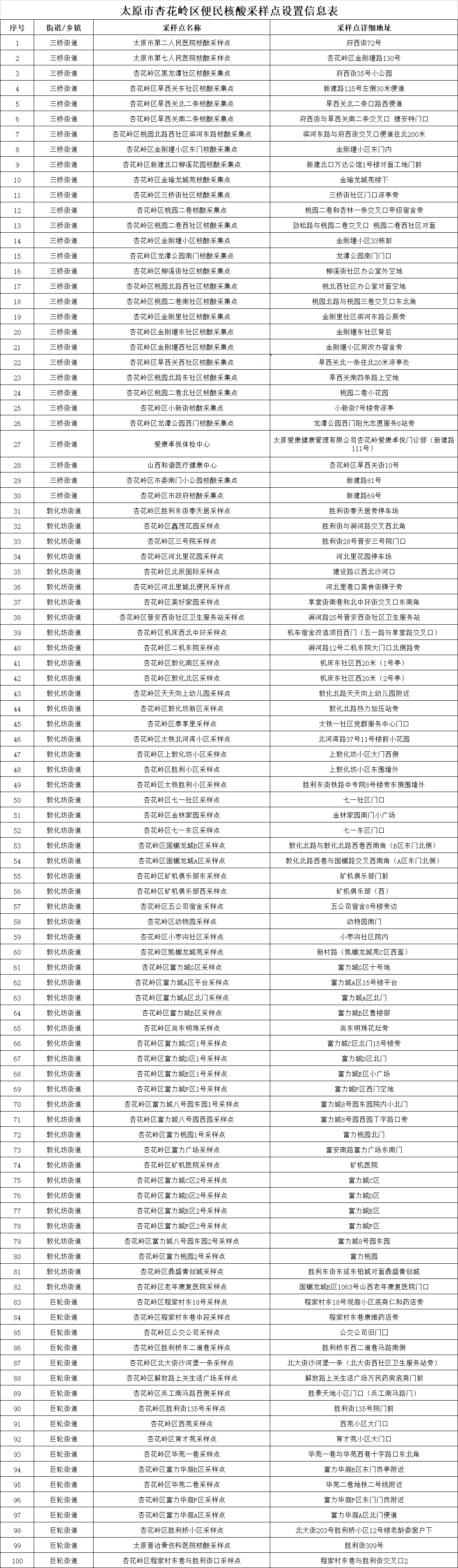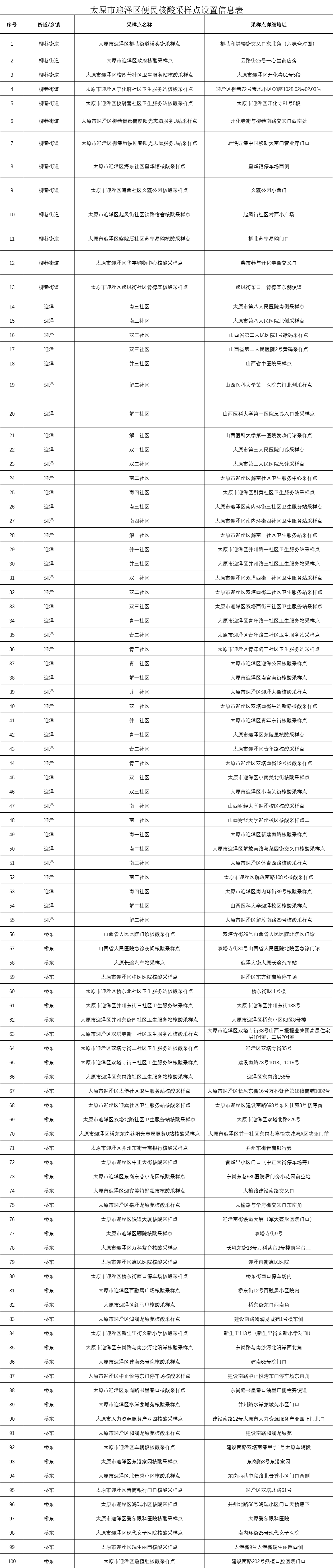 太原已設2022個采樣點 群眾可就近免費核酸檢測