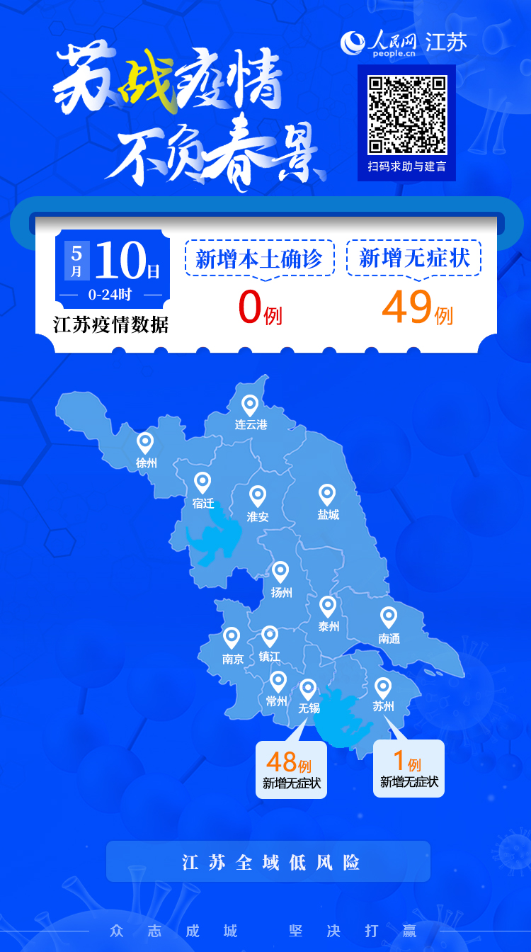 5月10日江蘇新增本土無癥狀感染者49例 無新增本土確診病例