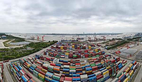 揚州:長江沿岸港口作業(yè)忙