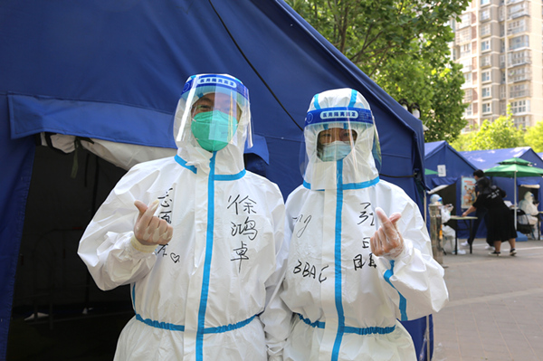 “第一天志愿工作完,我們兩個把在核酸現(xiàn)場工作的照片發(fā)到了家庭群,父母和孩子看到了后都為我們倆自豪,我們也感覺這一天志愿服務(wù)真得很充實?!毙禅欁空f道。