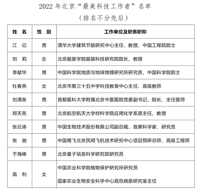 根據(jù)中央宣傳部、中國科協(xié)等六部門的文件要求,北京市委宣傳部,市科協(xié),市科委、中關(guān)村管委會,市經(jīng)信局聯(lián)合下發(fā)了《關(guān)于開展2022年北京“最美科技工作者”學(xué)習(xí)宣傳活動的通知》,組織動員各區(qū)各單位各部門積極參與北京“最美科技工作者”學(xué)習(xí)宣傳活動,經(jīng)過廣泛發(fā)動、層層推薦、資格審核、專家遴選、社會公示等程序,10名同志當(dāng)選2022年北京“最美科技工作者”。