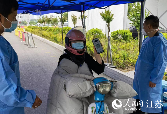 蘇州市民掃描場所碼進(jìn)站。人民網(wǎng)記者 王繼亮攝
