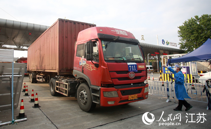 貨車有序通過揚(yáng)州卡口。人民網(wǎng) 張玉峰攝