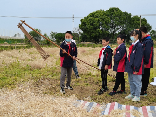 高淳區(qū)漆橋中心小學(xué)發(fā)揮地域優(yōu)勢,拓寬勞動實踐場所,依托街道中心村農(nóng)耕文化館開展“打菜籽”研學(xué)活動?!安倏v梿枷時,前手上提,后手下壓,梿枷的轉(zhuǎn)軸循環(huán)轉(zhuǎn)動,反復(fù)拍打使油菜脫粒。”校外輔導(dǎo)員趙士華正詳細(xì)介紹油菜籽的收割、分離過程。通過講解,同學(xué)們對油菜籽的采收有了初步認(rèn)識。走進(jìn)田間,同學(xué)們紛紛擼起袖子,躍躍欲試。在趙士華的耐心指導(dǎo)下,同學(xué)們慢慢找到打油菜籽的正確方法,連枷不停地拍打下去,一粒粒油菜籽從油菜莢中躍出。同學(xué)們在了解農(nóng)耕知識、學(xué)習(xí)農(nóng)耕技能的同時,體驗勞動的快樂。