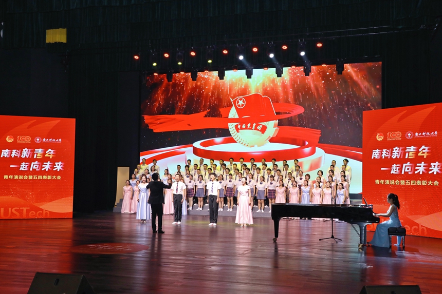 “南科新青年·一起向未來(lái)”青年演說(shuō)會(huì)現(xiàn)場(chǎng)合唱。南科大供圖