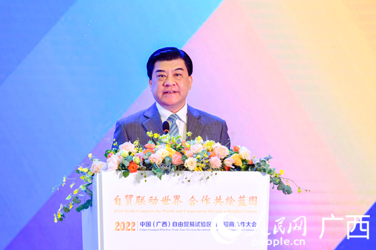 廣西壯族自治區(qū)黨委常委、自治區(qū)常務(wù)副主席,廣西自貿(mào)試驗(yàn)區(qū)建設(shè)指揮部指揮長(zhǎng)蔡麗新在大會(huì)致辭中表示,廣西自貿(mào)試驗(yàn)區(qū)位于中國(guó)—東盟空間樞紐位置,打開(kāi)門就是東盟市場(chǎng)、揚(yáng)起帆就是海上絲綢之路,區(qū)位優(yōu)勢(shì)得天獨(dú)厚。目前,國(guó)家賦予的120項(xiàng)改革試點(diǎn)任務(wù)全部實(shí)施,累計(jì)新設(shè)立企業(yè)突破6萬(wàn)家,是成立前的17倍,實(shí)際利用外資、外貿(mào)進(jìn)出口額分別占廣西全區(qū)總額34.9%和33.4%,一批行業(yè)領(lǐng)軍企業(yè)相繼落戶,充分發(fā)揮了引領(lǐng)廣西高質(zhì)量發(fā)展、高水平開(kāi)放示范帶動(dòng)作用。