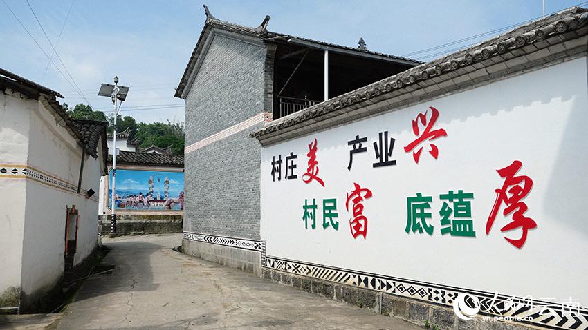 村民們?nèi)兆雍茫衩婷哺?。走進(jìn)一戶村民家,外墻是象征吉祥的金雞、白象壁畫,主人悠閑地給滿院子的花兒澆水。來訪者對其恬靜生活贊嘆不已,主人家“順桿爬”:“能過上這種好日子,放到以前,想都不敢想。”