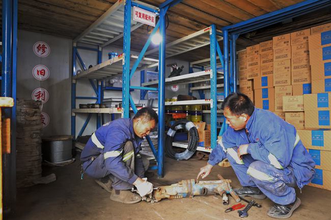 5月21日,在井下215輔運(yùn)掘進(jìn)工作面,職工尤東東正在和工友一起安裝調(diào)試自主設(shè)計(jì)的隔爆水棚加水裝置。該裝置既避免了登高作業(yè)帶來的安全隱患,同時(shí)加水效率相比之前也有很大提升。