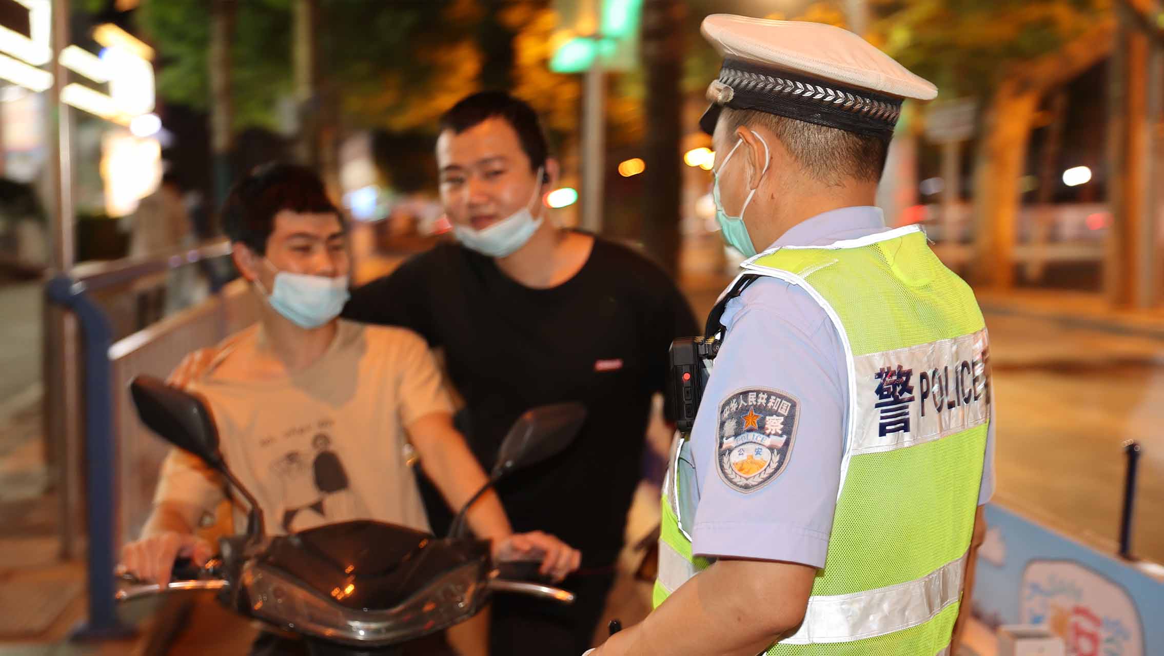 長安交警大隊民警在中山路青園街口勸導(dǎo)電動車騎乘人員佩戴安全頭盔。 王浩天攝