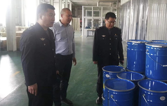 相關工作人員在企業(yè)進行檢查。石家莊市生態(tài)環(huán)境局供圖
