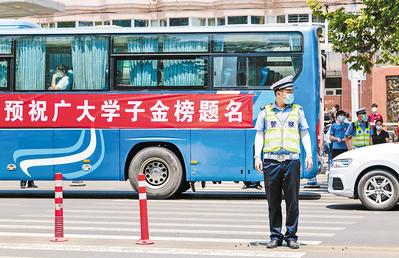 “為保證高考考生順利安全抵達(dá)考點(diǎn),考試期間,我們在考點(diǎn)附近安排部署執(zhí)勤警力,并根據(jù)考試時(shí)間提前一個(gè)半小時(shí)到崗到位?!痹谑仪f市第六中學(xué)考點(diǎn)執(zhí)勤的交警告訴記者,考點(diǎn)位于主干路,周邊商超、單位較多,容易出現(xiàn)擁堵,為方便考生,交警根據(jù)車流量情況,對社會(huì)車輛采取間斷放行等措施進(jìn)行有效分流,避免考點(diǎn)門前路段出現(xiàn)擁堵。