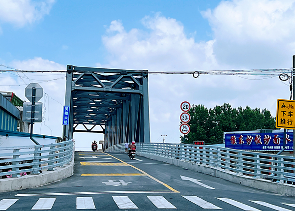 民之所盼,政之所向。2021年4月,通州區(qū)、劉橋鎮(zhèn)兩級政府啟動英雄大橋重建程序,劃撥2800萬元專項資金用于建橋,緊接著5月確定施工方案、6月進場施工、12月完成橋墩沉臺施工。今年1月,主橋鋼桁架吊裝完成。