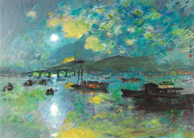 石湖串月(油畫)顏文樑作