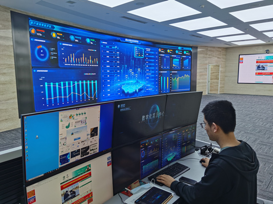 國網(wǎng)冀北電力工作人員對唐山供電公司小微企業(yè)信用評價(jià)情況進(jìn)行可視化展示。王暢攝