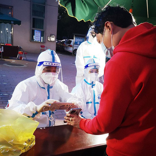 5月3日,北京公交員工張國鑌和閆文芳夫妻原本休息,兩人準(zhǔn)備動身去岳母家接孩子,社區(qū)微信群里突然彈出了通知:“招募核酸檢測志愿者……”兩人當(dāng)即決定參加志愿服務(wù)。在核酸檢測現(xiàn)場,夫妻倆一人引導(dǎo)居民排隊(duì),一人負(fù)責(zé)掃碼登記,從早忙到晚。“為大家就是為小家,大家好才能小家好。我倆都是黨員,理應(yīng)有這個覺悟?!睆垏\和閆文芳說。