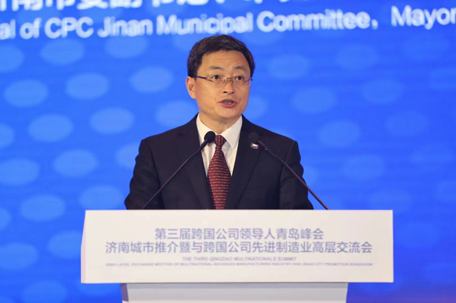 人民網(wǎng)青島6月20日電 6月20日上午,第三屆跨國公司領(lǐng)導(dǎo)人青島峰會(huì)舉辦期間,濟(jì)南市舉辦城市推介暨與跨國公司先進(jìn)制造業(yè)高層交流會(huì)。近100家世界500強(qiáng)、跨國公司、知名企業(yè)、商協(xié)會(huì)機(jī)構(gòu)及駐濟(jì)重點(diǎn)企業(yè)的150余名嘉賓齊聚一堂,共商合作,共謀發(fā)展。山東省委常委、市委書記劉強(qiáng)出席,市委副書記、市長于海田出席并致辭。