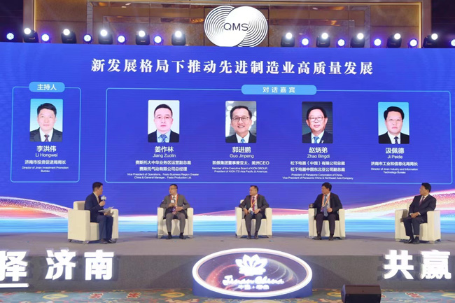在對(duì)話交流階段,費(fèi)斯托大中華業(yè)務(wù)區(qū)運(yùn)營副總裁姜作林,凱傲集團(tuán)董事兼亞太、美洲CEO郭進(jìn)鵬,松下電器中國東北亞公司副總裁趙炳弟,濟(jì)南市工業(yè)和信息化局局長汲佩德、濟(jì)南市投資促進(jìn)局局長李洪偉等,圍繞“新發(fā)展格局下推動(dòng)先進(jìn)制造業(yè)高質(zhì)量發(fā)展”展開了對(duì)話交流。