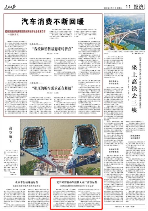 復興號智能動車組投入京廣高鐵運營