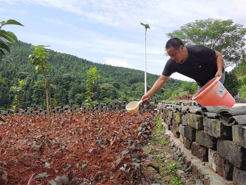 如今,黃春梅一家把騰出的土地,改造成了菜園,種植著紅薯、玉竹、果樹。