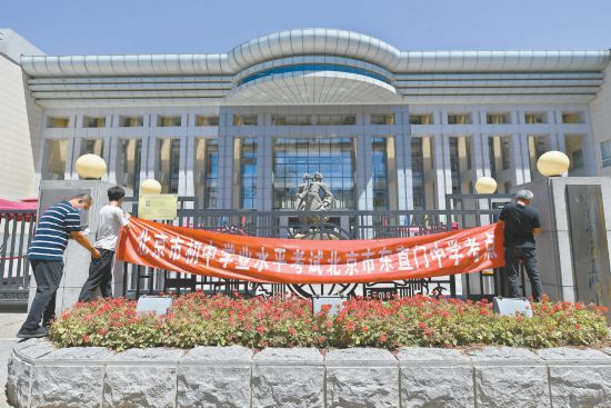 2022年北京中考今天開考,本市18個考區(qū)各類中考考點已全部準備就緒。昨天,作為中考考點的北京東直門中學完成布置工作。本報記者 潘之望攝