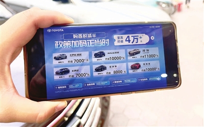 采訪中,多家4S店的銷售人員表示,最近看車的人很多,大家都在問購置稅減半的問題。銷售人員指著一輛卡羅拉向記者介紹,這輛車廠家指導價為12.78萬元,其中購置稅原本要1.3萬元左右,現(xiàn)在客戶只需要交6500元左右。同時最近還有數(shù)字人民幣相關推廣活動,預計可以再優(yōu)惠2000多元,加上廠商優(yōu)惠,總體算下來花費約11萬元。
