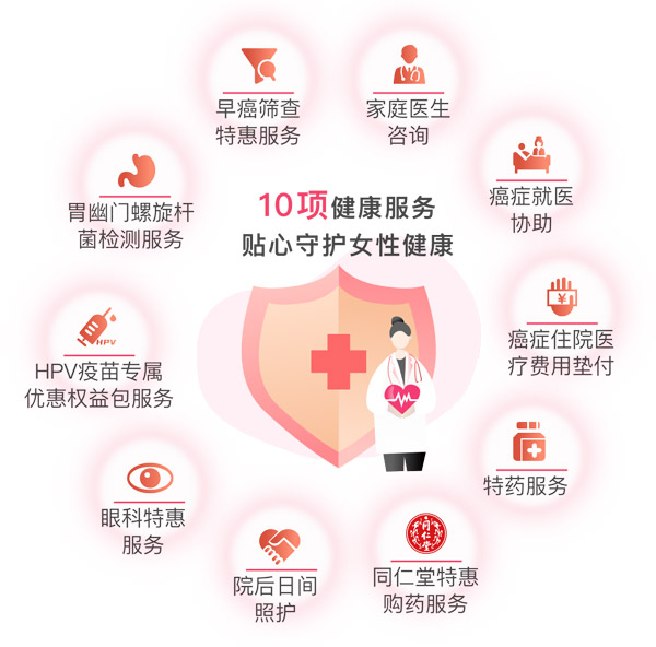 此外,“愛她?!边€為參保人提供HPV疫苗預(yù)約服務(wù)、胃幽門螺旋桿菌檢測(cè)服務(wù)、早癌篩查特惠服務(wù)、家庭醫(yī)生咨詢、癌癥就醫(yī)協(xié)助、癌癥住院醫(yī)療費(fèi)用墊付、特藥服務(wù)、同仁堂購藥特惠服務(wù)、院后日間照護(hù)等10項(xiàng)健康服務(wù),為女性和家人的健康全面保駕護(hù)航。