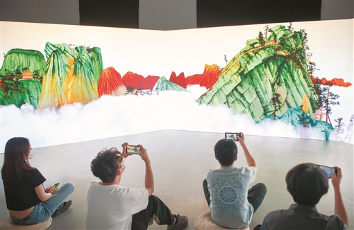 人工智能山水圖、可實(shí)時(shí)互動(dòng)的抽象畫、沉浸式體驗(yàn)的5G山水畫卷……眾多充盈“黑科技”元素的藝術(shù)作品,打造出充滿古意而又嶄新的文化盛宴,帶領(lǐng)觀眾體驗(yàn)沉浸式和流動(dòng)式的藝術(shù)畫卷,感受“有聲、有色、有全景”的超高清沉浸式視聽體驗(yàn)。