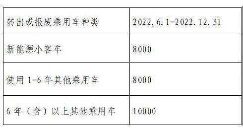 2022年6月至12月底,對于報(bào)廢或向京外轉(zhuǎn)出北京市注冊登記在本人名下1年以上的乘用車,在北京市汽車銷售企業(yè)購買新能源乘用新車,并在北京市上牌的個(gè)人消費(fèi)者給予不超過1萬元/臺(tái)補(bǔ)貼。