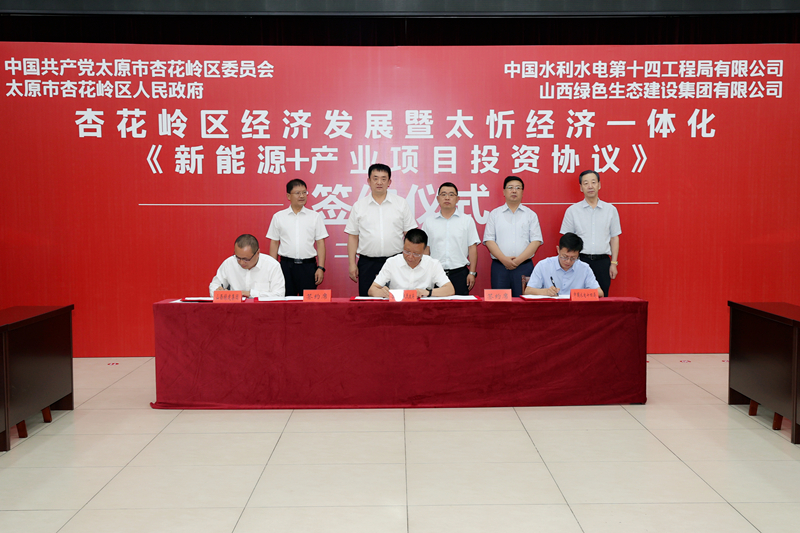 人民網(wǎng)太原7月13日電(記者 雷昊)今日,太原市杏花嶺區(qū)經(jīng)濟(jì)發(fā)展暨太忻經(jīng)濟(jì)一體化“新能源+產(chǎn)業(yè)項(xiàng)目投資協(xié)議”簽約儀式舉行。中國水利水電第十四工程局有限公司、山西綠色生態(tài)建設(shè)集團(tuán)有限公司與杏花嶺區(qū)人民政府簽訂《新能源+產(chǎn)業(yè)項(xiàng)目合作投資協(xié)議》,在傳統(tǒng)支柱行業(yè)轉(zhuǎn)型升級、基礎(chǔ)設(shè)施改造、綠色產(chǎn)業(yè)、鄉(xiāng)村振興、文旅產(chǎn)業(yè)、生態(tài)治理等領(lǐng)域開展深度合作,預(yù)計(jì)總投資80億元。