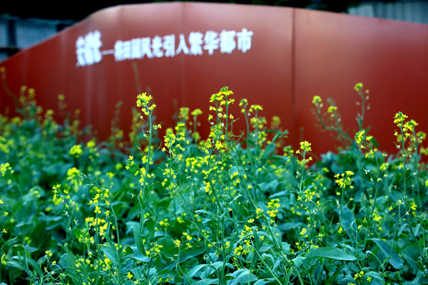 本次改造以“安貞拾光”為敘事主線,用深紅色曲線景墻展現(xiàn)安貞地區(qū)歷史文化,以油菜花為亮點,將“田園城市”理念引入城市更新。