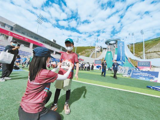 “媽媽,我找到了!”6歲女童小安妮跟著媽媽一路奔跑到達(dá)位于“冰玉環(huán)”上的指定地點(diǎn),完成打卡,高興地與媽媽拍手。昨天舉辦的冬奧場(chǎng)館定向賽吸引了幾百名戶外運(yùn)動(dòng)愛好者來到張家口崇禮,他們?cè)趪?guó)家跳臺(tái)滑雪中心、張家口奧林匹克頒獎(jiǎng)廣場(chǎng)、張家口冬奧村、太子城考古遺址公園等多個(gè)冬奧會(huì)場(chǎng)館間穿行,感受這里的冬奧記憶。