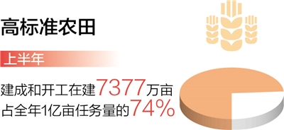 種子耕地農(nóng)機基礎(chǔ)進一步夯實,農(nóng)業(yè)綜合生產(chǎn)能力不斷提升。種業(yè)振興行動扎實推進。資源普查任務(wù)進度過半,已收集農(nóng)作物種質(zhì)資源11萬份、畜禽遺傳材料6萬份、水產(chǎn)遺傳材料5萬份。開展農(nóng)業(yè)關(guān)鍵核心技術(shù)攻關(guān),首次審定一批綠色、專用和耐鹽堿小麥品種。高標(biāo)準(zhǔn)農(nóng)田建設(shè)加快推進。上半年建成和開工在建高標(biāo)準(zhǔn)農(nóng)田7377萬畝,占全年1億畝任務(wù)量的74%。農(nóng)機裝備條件持續(xù)改善。推進機收減損,小麥機收損失率控制在2%以內(nèi)。