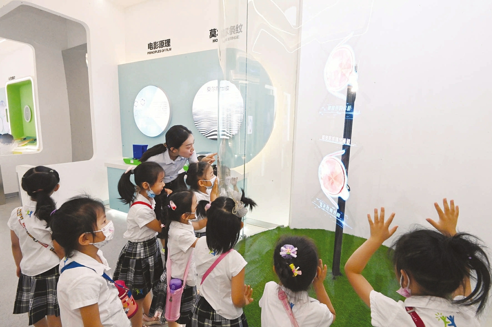 7月19日,山西廣播電視臺攜手山西愛爾眼科醫(yī)院開啟“青少年近視防控周”公益行動。太原市童樂幼兒園的70余名小朋友來到青少年眼健康科普館,通過各種科學(xué)儀器探索“眼睛”的奧秘。(記者阮洋攝)