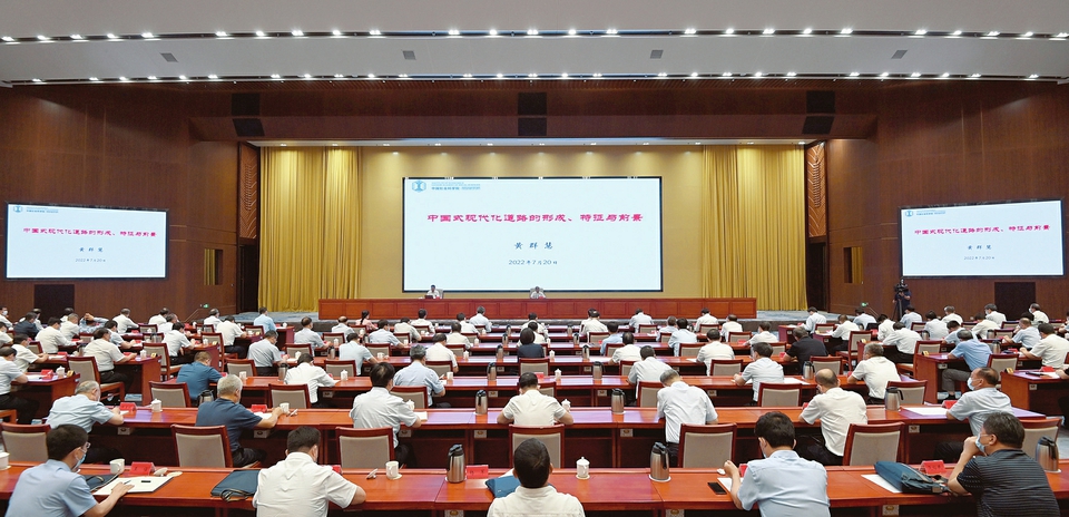 報(bào)告會(huì)上,黃群慧以《中國式現(xiàn)代化道路的形成、特征與前景》為題,圍繞中國式現(xiàn)代化道路的形成、特質(zhì)與理論意義,習(xí)近平經(jīng)濟(jì)思想與中國經(jīng)濟(jì)現(xiàn)代化的前景,新發(fā)展階段的現(xiàn)代化重大戰(zhàn)略任務(wù)等進(jìn)行了深入講解。報(bào)告既有思想理論高度,又有實(shí)踐指導(dǎo)深度,對(duì)全方位推動(dòng)高質(zhì)量發(fā)展、走好山西現(xiàn)代化發(fā)展之路很有啟迪意義。