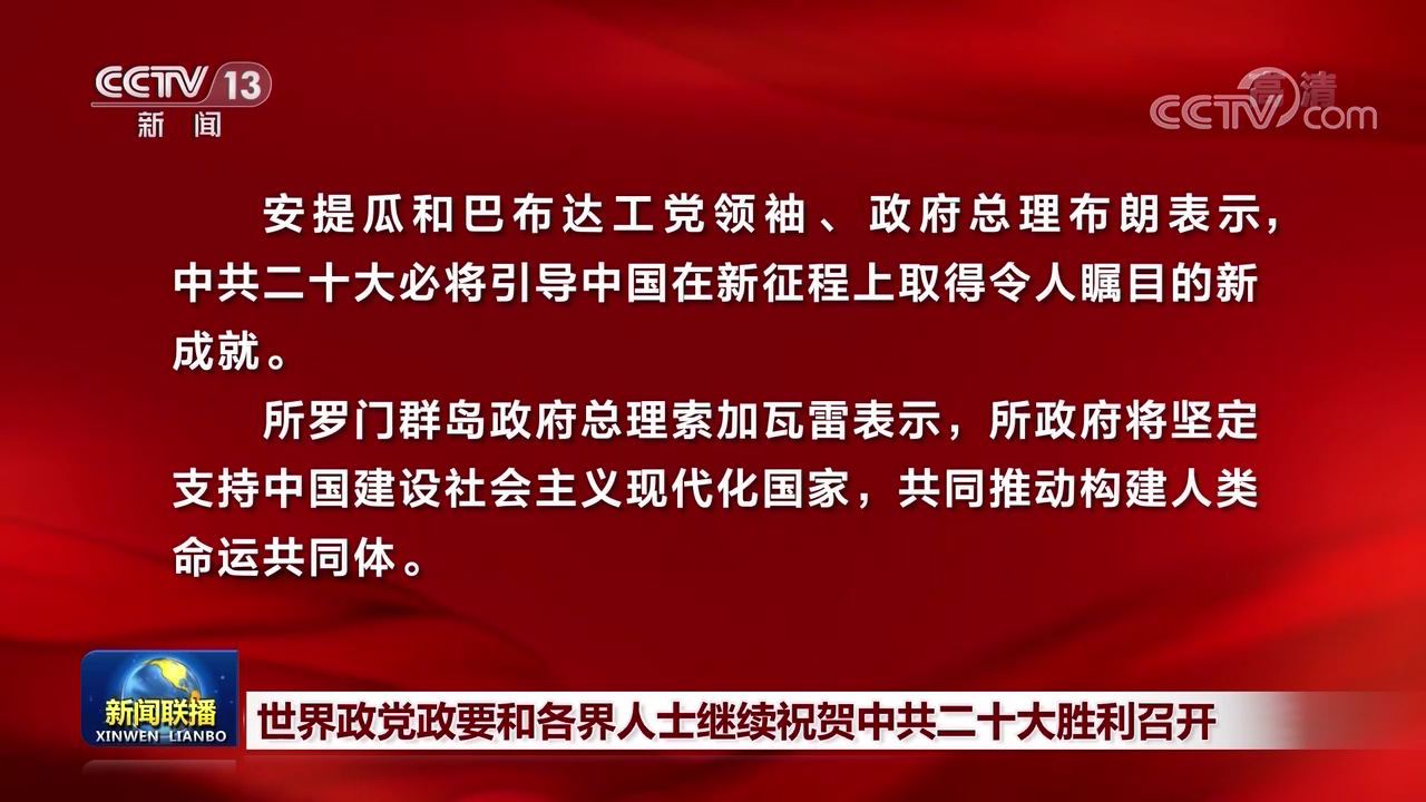 在中國共產(chǎn)黨第二十次全國代表大會召開之際,世界政黨政要和各界人士繼續(xù)致電致函中共中央和習(xí)近平總書記,熱烈祝賀中共二十大勝利召開。