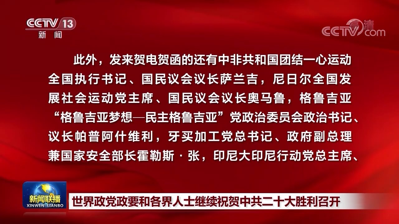 世界政黨政要和各界人士繼續(xù)祝賀中共二十大勝利召開
