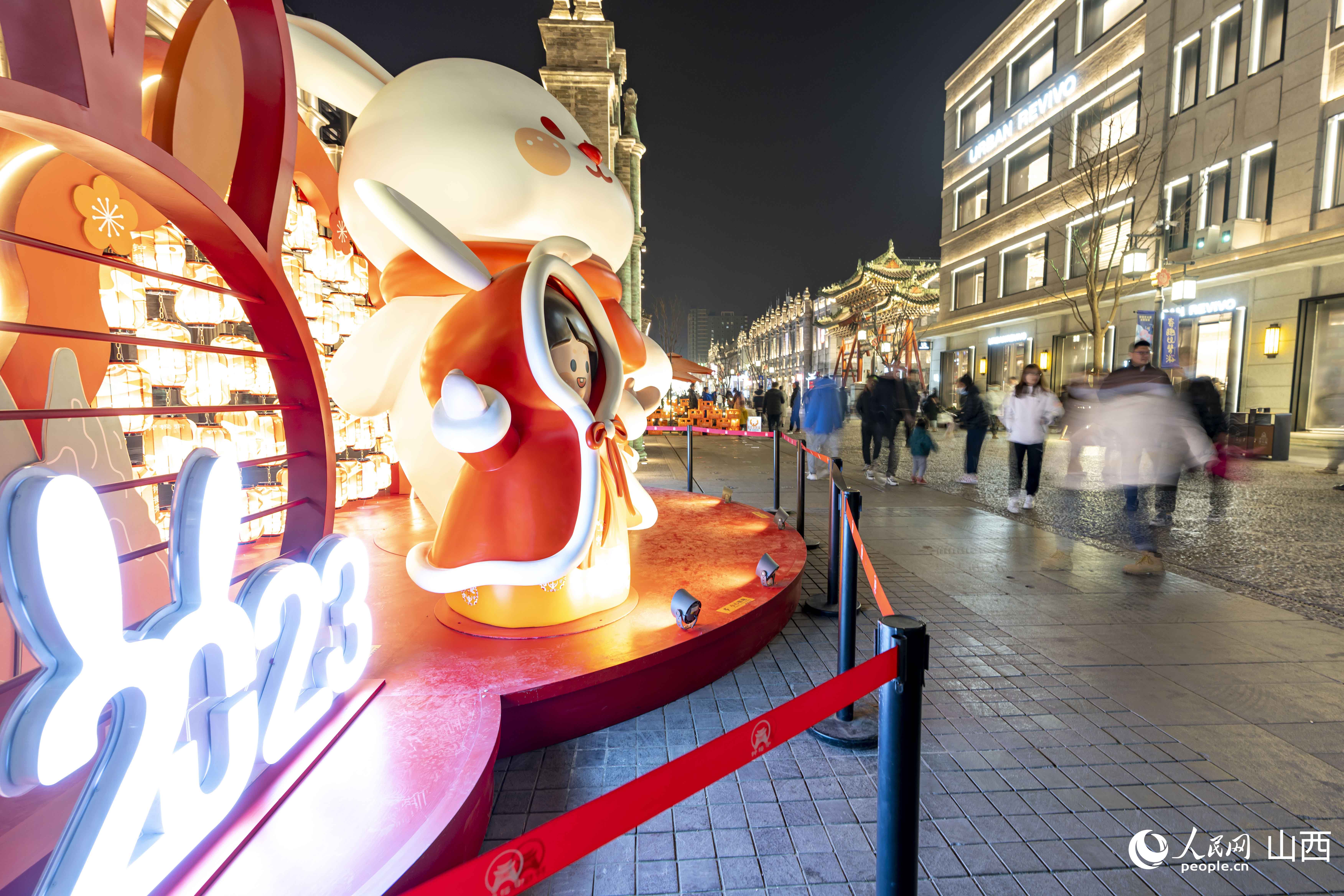 每逢夜幕降臨,鐘樓街上燈光璀璨,人頭攢動(dòng)。隨處可見(jiàn)的新年兔子元素,為城市增添了年味,游客紛紛駐足拍照,喜氣洋洋,年味兒十足。