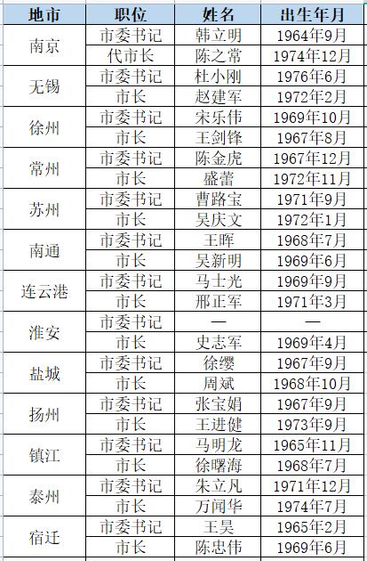 人民網(wǎng)統(tǒng)計(jì)發(fā)現(xiàn),江蘇設(shè)區(qū)市黨政主官中“70后”已達(dá)10位,占比近半。其中,蘇州、無(wú)錫、泰州三市的黨政主官均為“70后”。江蘇各市黨政主官里,目前最年輕的是出生于1976年的無(wú)錫市委書記杜小剛。