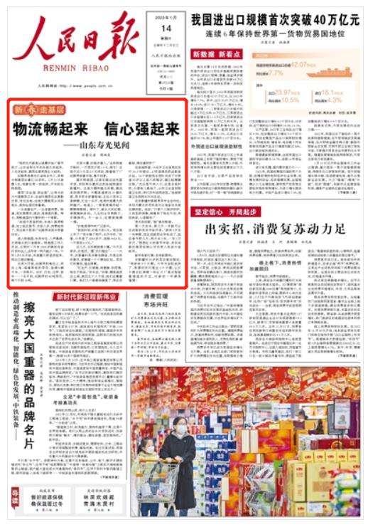 新春走基層 | 人民日報頭版頭條聚焦山東壽光:物流暢起來,信心強起來!