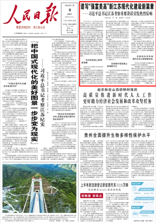 人民日報丨譜寫“強富美高”新江蘇現(xiàn)代化建設(shè)新篇章——習(xí)近平總書記江蘇考察重要講話引發(fā)熱烈反響