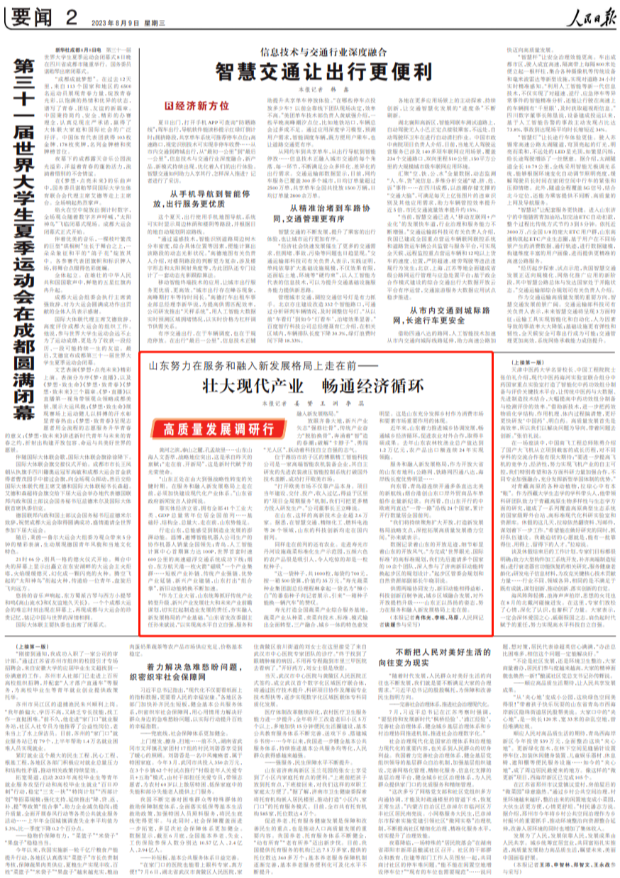 人民日報點贊山東:壯大現(xiàn)代產(chǎn)業(yè) 暢通經(jīng)濟循環(huán)