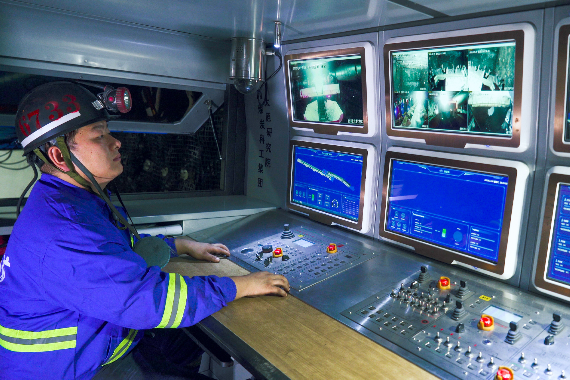 煤礦工人操控“煤海蛟龍”進(jìn)行巷道掘進(jìn)。(黃陵礦業(yè)二號煤礦供圖)