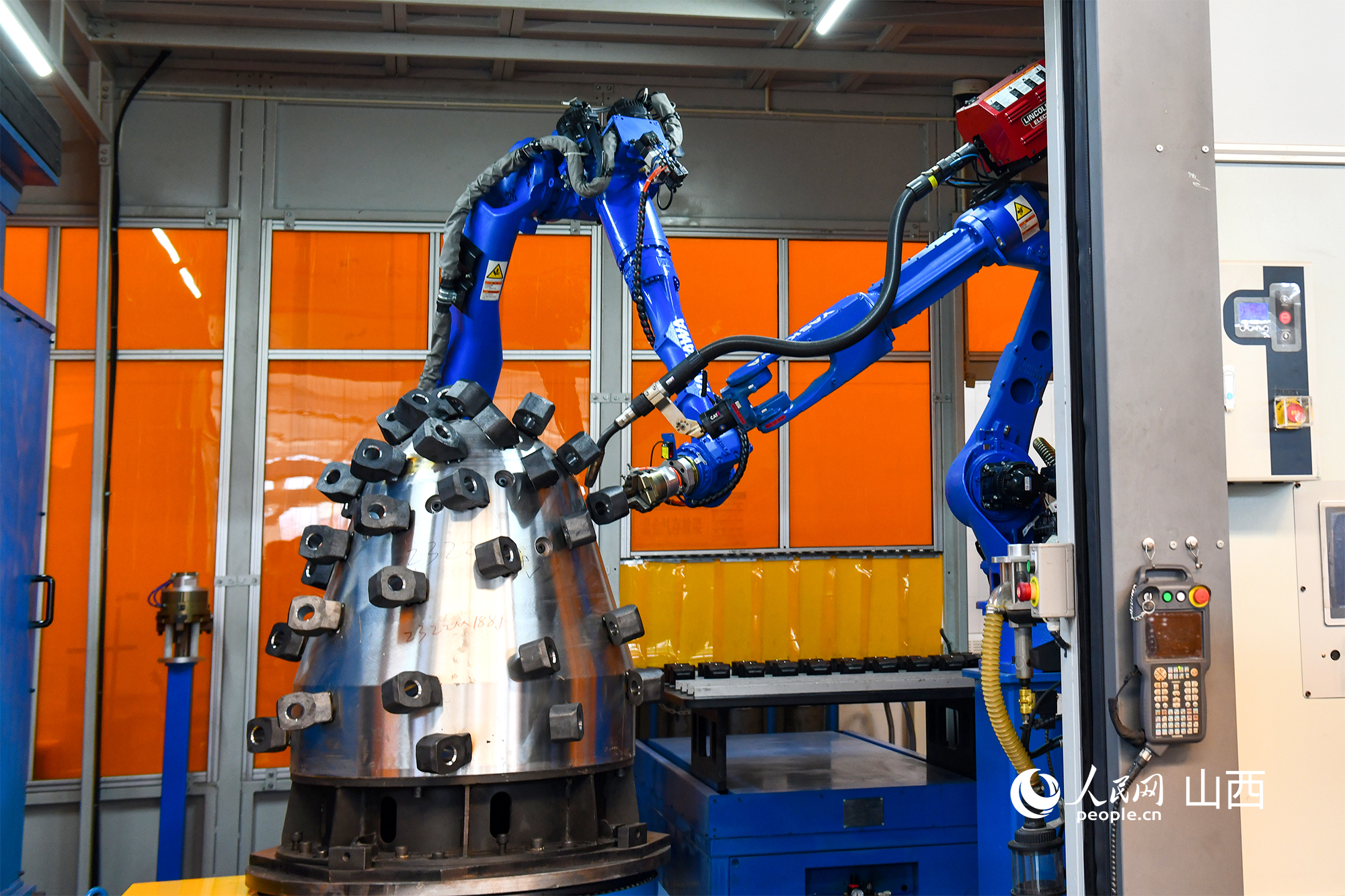 太原研究院彩虹基地生產(chǎn)車間陳列的巷道掘進(jìn)裝備。人民網(wǎng)記者 焦搏文攝
