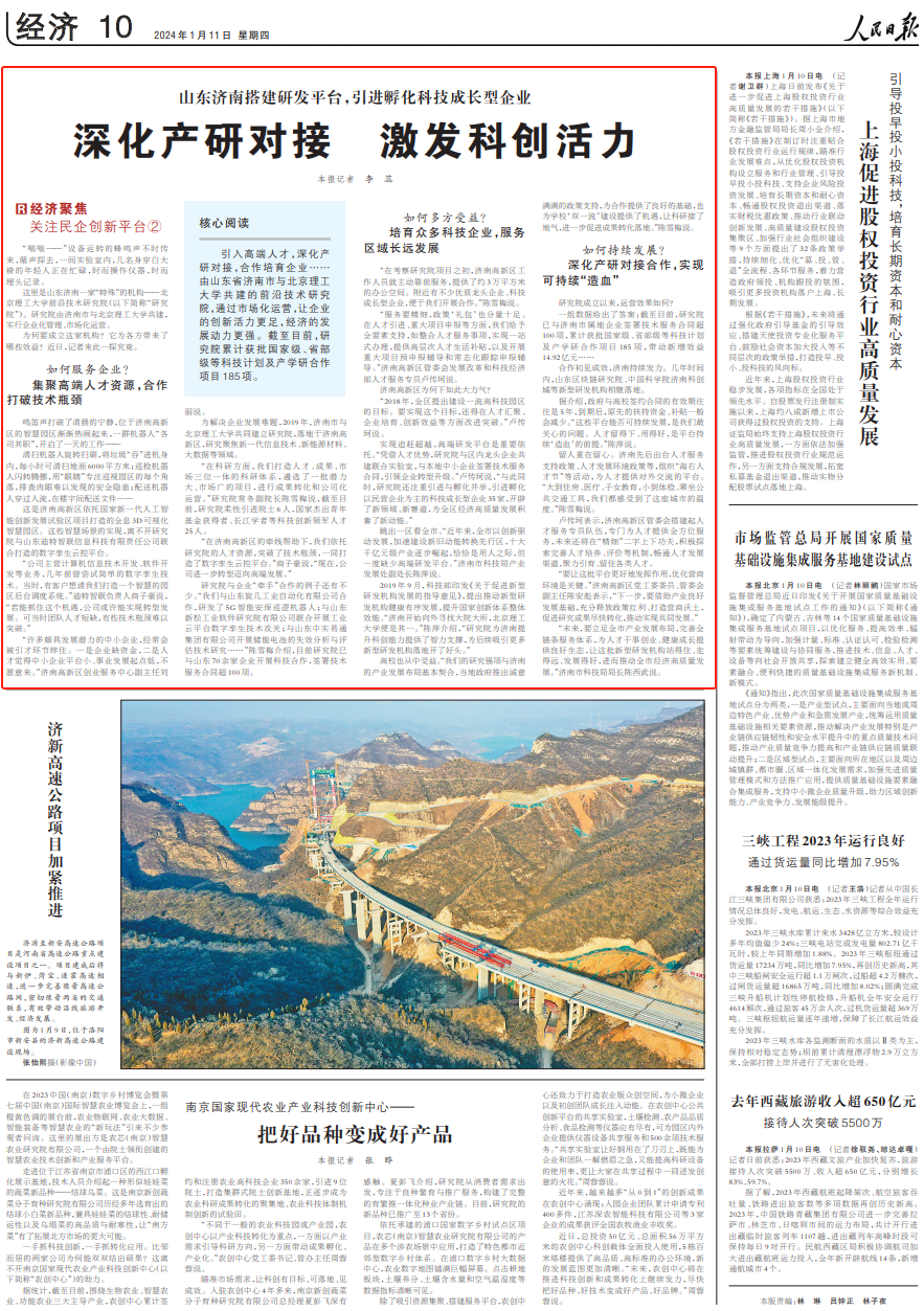人民日?qǐng)?bào)點(diǎn)贊濟(jì)南:深化產(chǎn)研對(duì)接 激發(fā)科創(chuàng)活力