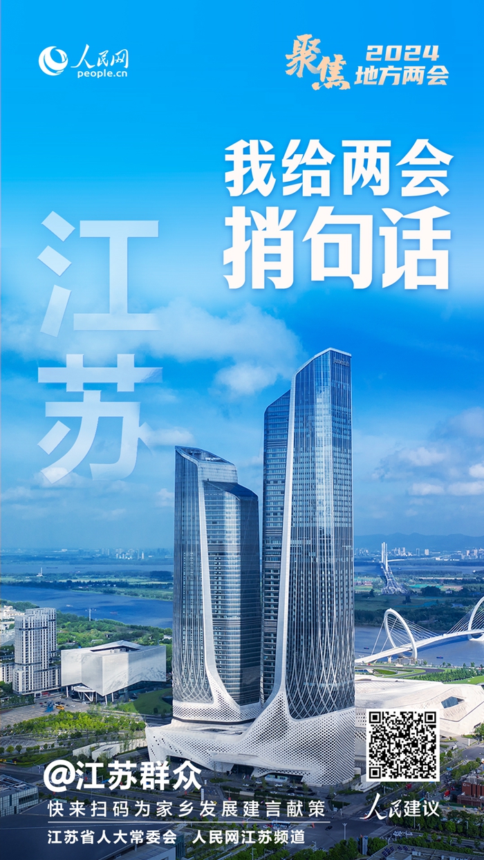2024年江蘇省兩會即將召開。為廣泛匯集社會各界關(guān)于經(jīng)濟發(fā)展、民生保障、教育人才、科技創(chuàng)新、農(nóng)業(yè)農(nóng)村現(xiàn)代化等方面的好建議,即日起,人民網(wǎng)聯(lián)合江蘇省人大常委會推出“我給江蘇兩會捎句話”大型建言征集活動,廣大網(wǎng)友可通過人民網(wǎng)“領(lǐng)導(dǎo)留言板”小程序、“人民網(wǎng)+”客戶端等渠道,為家鄉(xiāng)發(fā)展積極建言獻策。