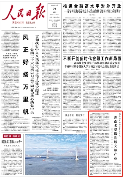 人民日?qǐng)?bào)頭版關(guān)注:湖南多舉措發(fā)展文旅產(chǎn)業(yè)