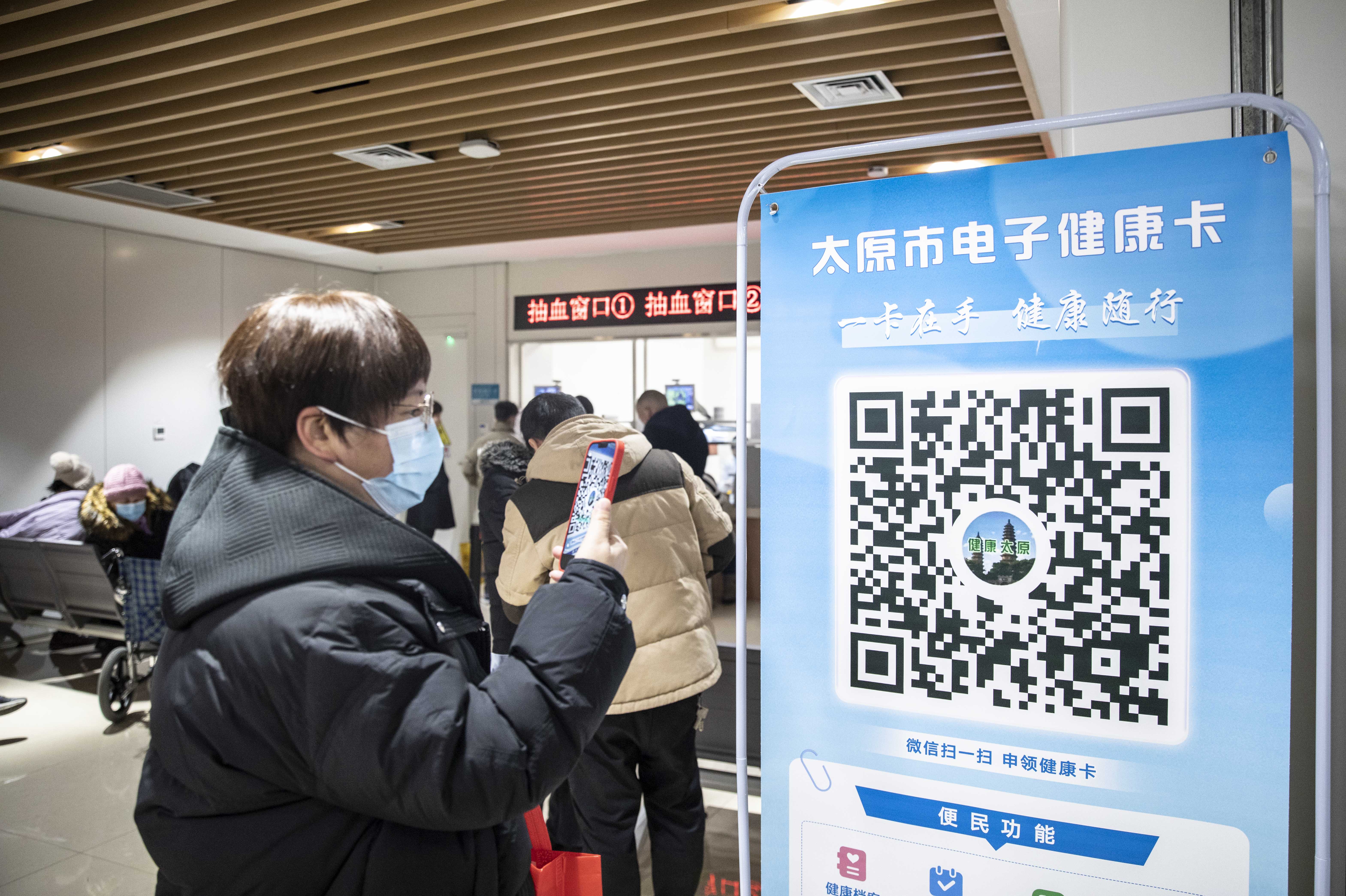 市民掃碼注冊太原市電子健康卡。人民網(wǎng)記者王帆攝