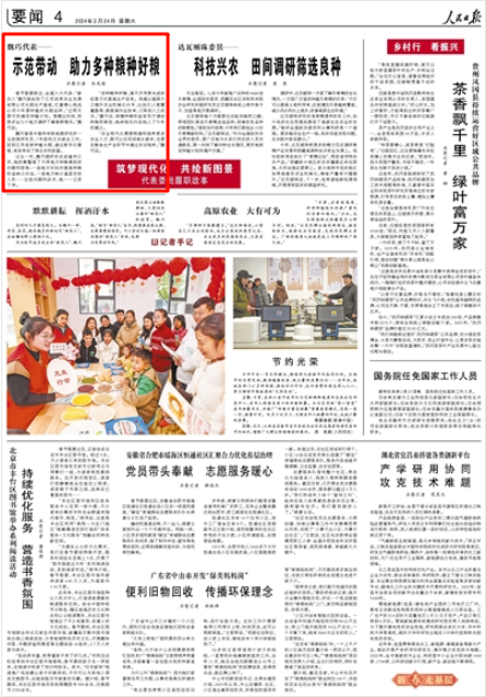 人民日?qǐng)?bào)|魏巧代表:示范帶動(dòng) 助力多種糧種好糧