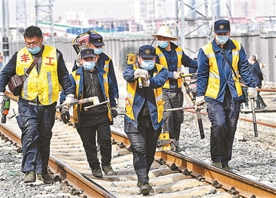 據(jù)介紹,這一次的撥線總長度達(dá)到384米、最大撥距7.6米,共3個撥接口,還要拆除115米的既有線路和兩側(cè)長2.7公里的臨時護網(wǎng),時間緊、任務(wù)重。施工開始后,施工人員緊密配合,最終在規(guī)定的時間內(nèi)完成了京滬線上下行線路撥接及大機搗固施工,信號系統(tǒng)更換也于同日下午更換完成。這標(biāo)志著北京豐臺站普速場具備接發(fā)普速列車條件。