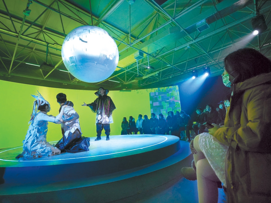 后浸沒式戲劇《畫皮2677》在繁星戲劇村全新的場景里上演,沒有舞臺,也沒有座位,取而代之的是在“未來”和“古風”之間穿梭變換的情境。觀眾進入劇場的同時成為更具有參與感和體驗感的“戲劇玩家”。本報記者 方非攝